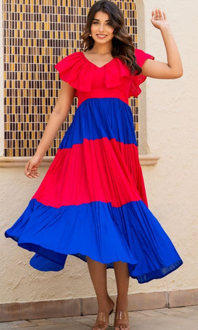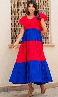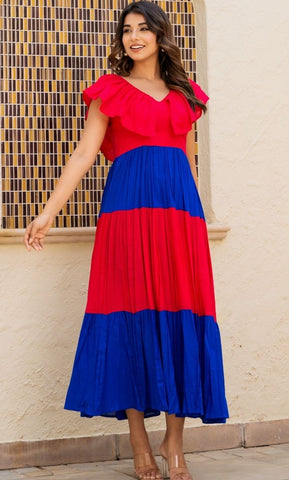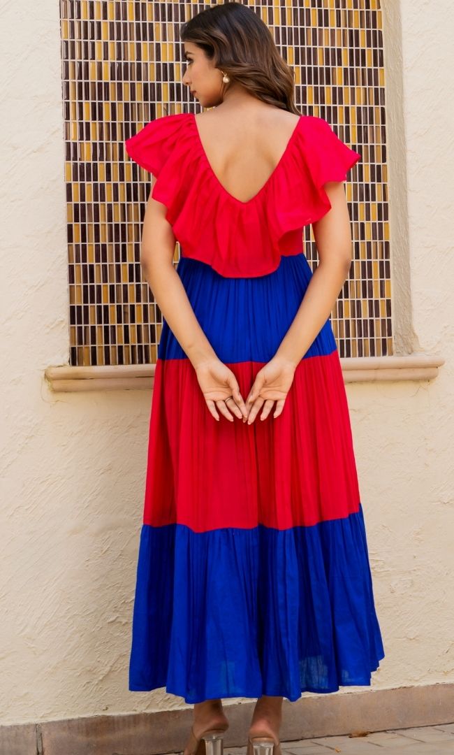 Our ruffle neckline maxi dress is the perfect pick for a Sunday brunch with your besties. Made from soft, breathable cotton, its vibrant colours are sure to turn heads wherever you go.