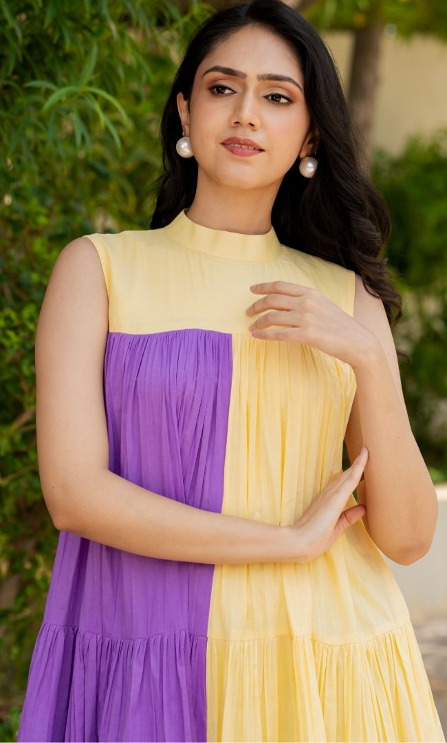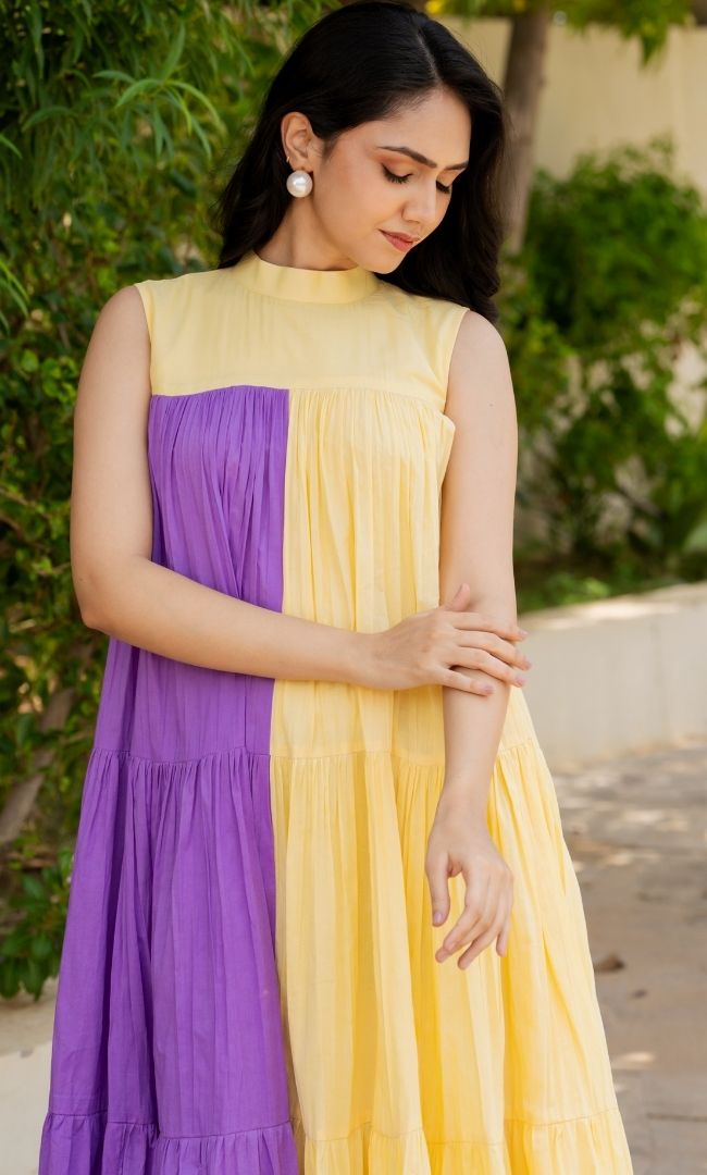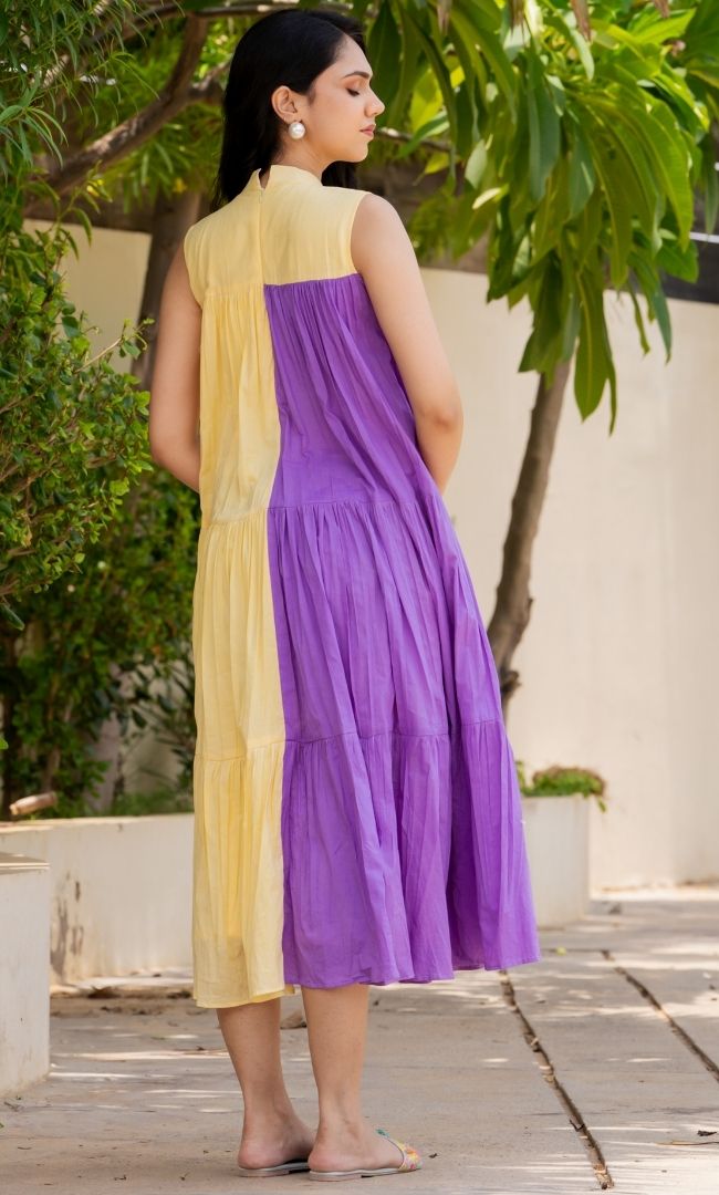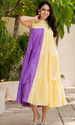 Our two-tone maxi dress in beautiful summery colours will elevate your style effortlessly, offering both comfort and elegance for outings and daily wear.